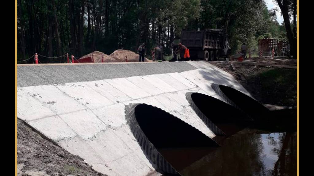 Управление автомобильных дорог Брянской области сообщает, что уже смонтированы трубы с бетонными лотками, сделаны площадки входа и выхода труб и основание насыпи. На одной половине моста уложили асфальт. Движение по мосту открыто по обновлённой части.