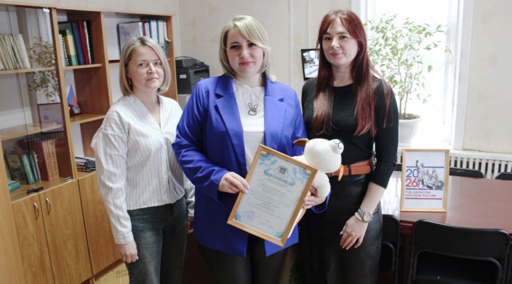Гости вручили Екатерине сертификат и мягкую игрушку, пожелав семье благополучия, здоровья детям и семейного тепла.