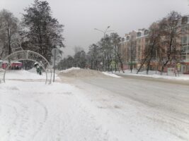 Коммунальщики очищают пешеходные переходы, остановки, подходы к социально-значимым объектам. Кроме этого, убирают снег в парке. Площадь в городе очищают с помощью снегоуборщика.
